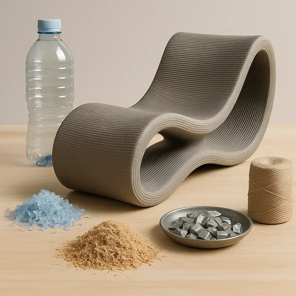 تسمح لنا تقنية الطباعة ثلاثية الأبعاد المتطورة لدينا بمعالجة مجموعة متنوعة من المواد المعاد تدويرها، لإنشاء مكونات أثاث متينة وجميلة تؤدي وظيفتها ببراعة تمامًا كالمواد التقليدية.