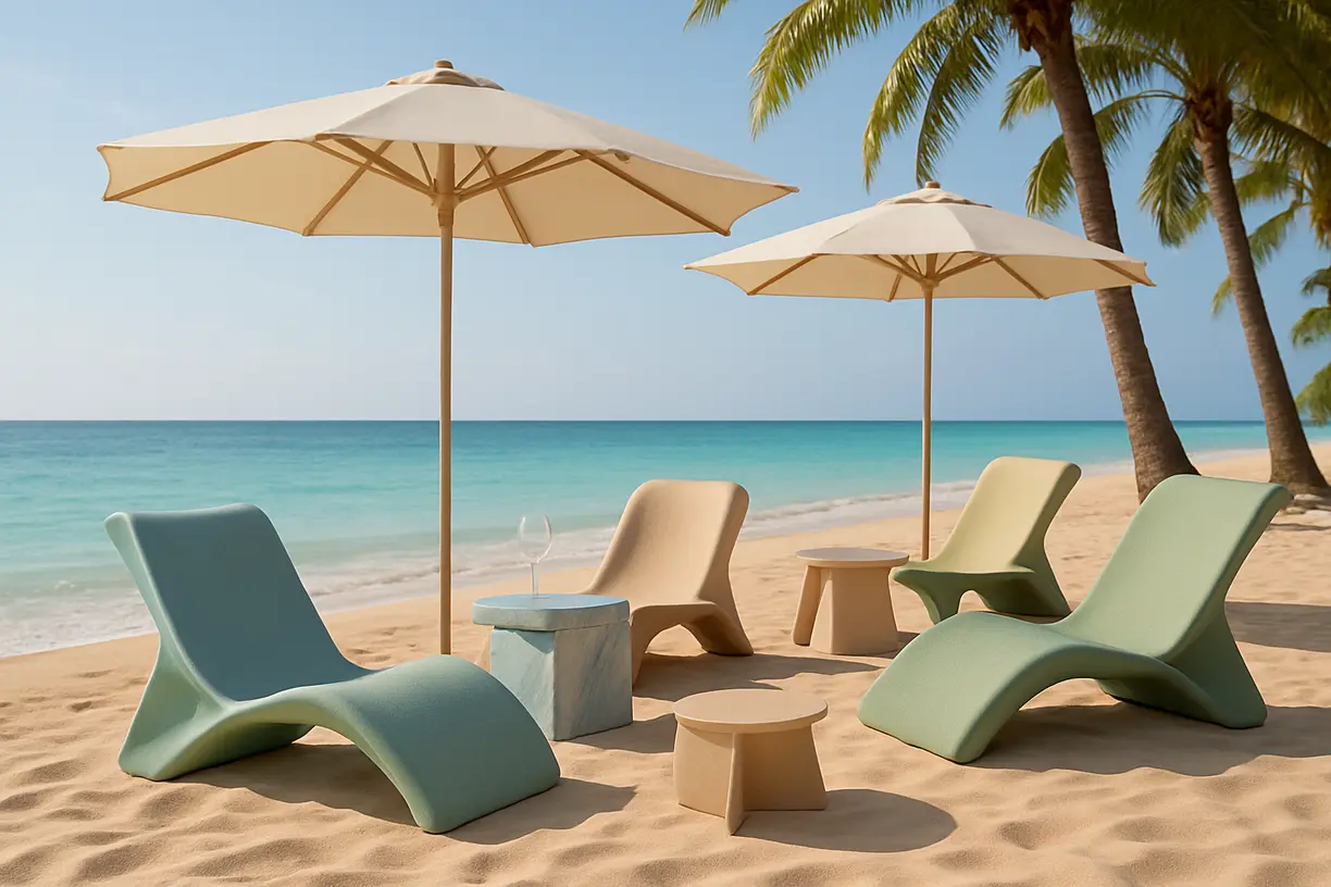 أثاث مصمم لتحمّل مختلف الظروف الجوية، يجمع بين الراحة والأناقة في المساحات الخارجية. مثالي للشواطئ، الحدائق، والمنتجعات، باستخدام خامات قابلة لإعادة التدوير وتصاميم عضوية جذابة.
